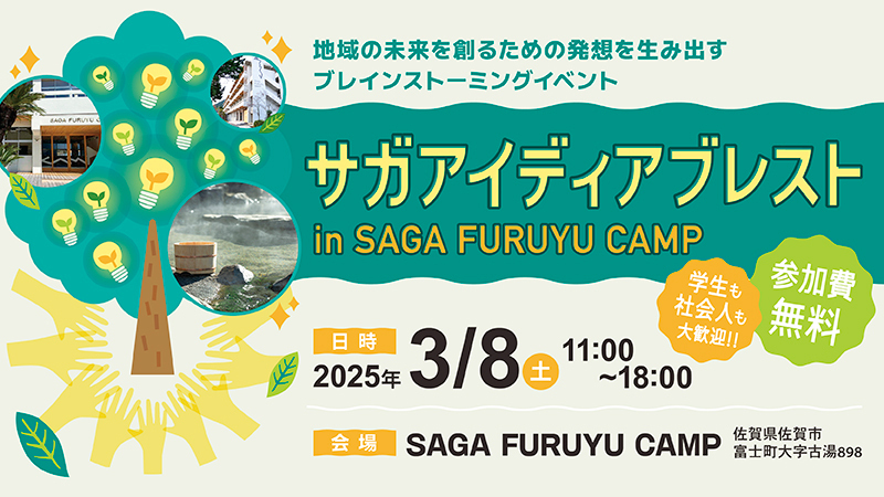 サガアイディアブレスト in SAGA FURUYU CAMP-地域の未来を創るための発想を生み出すブレインストーミングイベントを開催します!