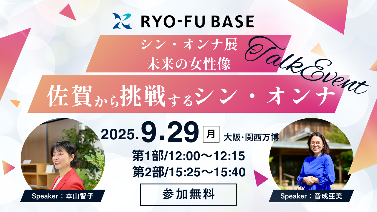 万博という外向けの舞台で「佐賀の女性が語る」「佐賀について語る」ことで、地方で挑戦を続ける女性たちの存在が広く知られ、そこから生まれる共感が次の挑戦を後押しすることを目指します。RYO-FU BASEは、この場を通じて「地方でも、誰でも、一歩を踏み出せる」というメッセージを発信します。