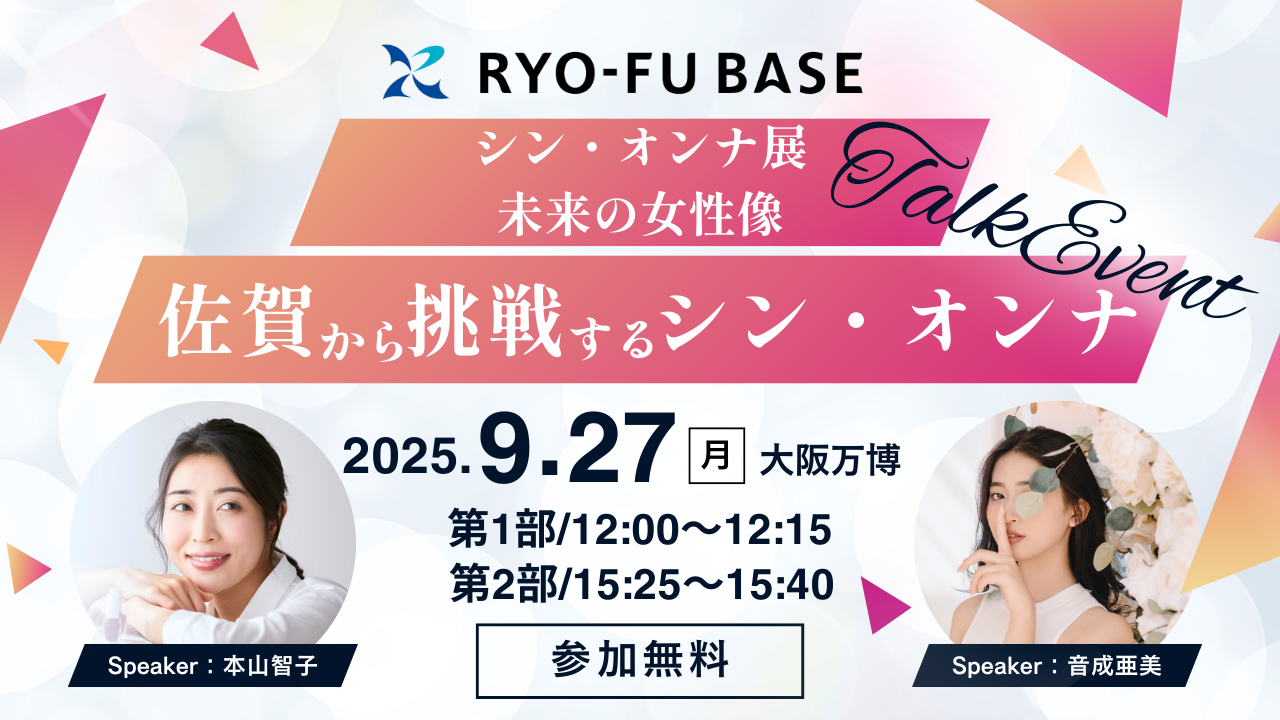 大阪・関西万博会場で開催される「シン・オンナ展」Vision‘s Woman(主催:てのひら美術館)特別トークショーに、佐賀県のスタートアップ・DX支援拠点「RYO-FU BASE」が参加します。